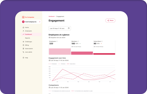 Use regional reports available on your admin platform to track engagement by country and showcase the value of your wellbeing initiatives.