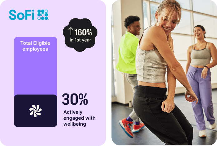 With employees across 24 locations, SoFi needed a wellbeing solution that was easy to manage and accessible nationwide. Wellhub delivered thousands of in-person and digital options—boosting enrollment in their wellness program by 2.5x in the first year.⁷