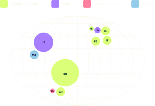 Strength Training emerged as the most popular workout genre worldwide. Yoga found favor in the United Kingdom and the United States, while Pilates was a top choice in Mexico.