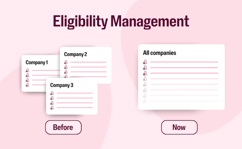Available globally: Using a new aggregate view get a snapshot of all employees across the group, and a smoother experience for transferring employees between companies when using Employee ID for eligibility verification.