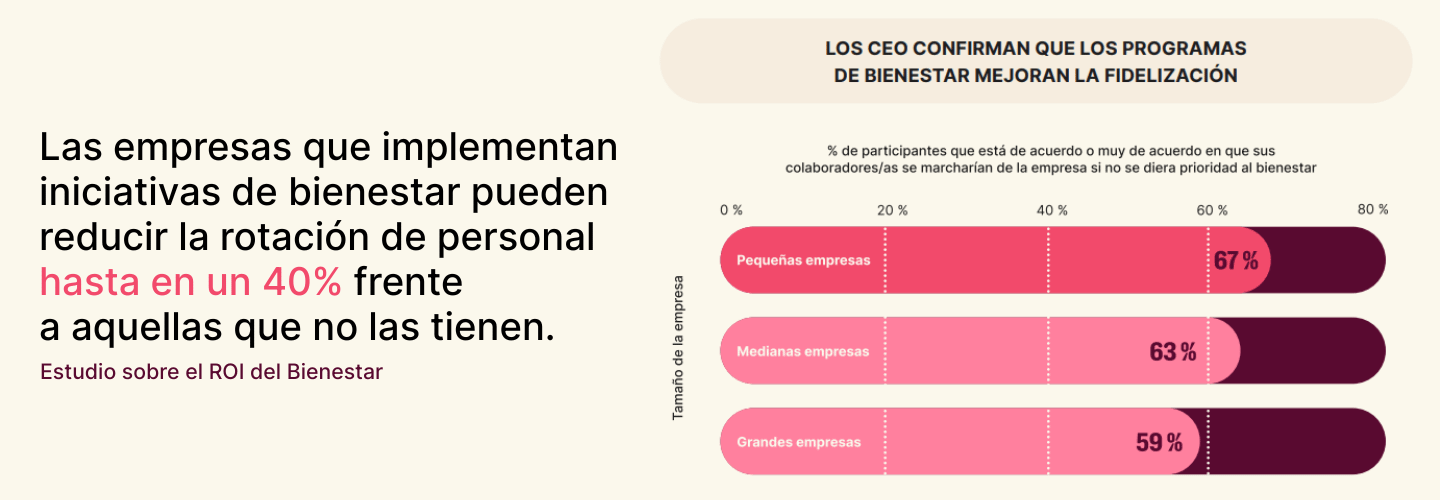 - Además, el bienestar no solo retiene: 73% de los CEO indica que los programas contribuyen a que la relación laboral se alargue en el tiempo.