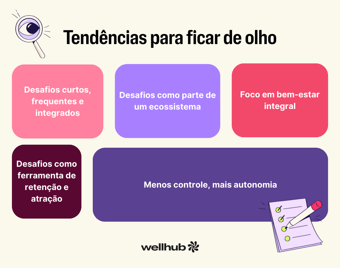 Nesse cenário, os desafios de bem-estar seguem no centro dessa conversa, desde que evoluam junto com o contexto e com as expectativas das pessoas.